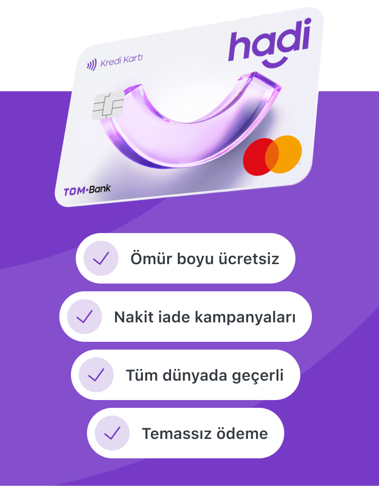 Hadi’de ömür boyu kart aidatı ödemez, bankacılık işlemlerini ücretsiz gerçekleştirir, avantajlı getiri oranlarından yararlanırsın.