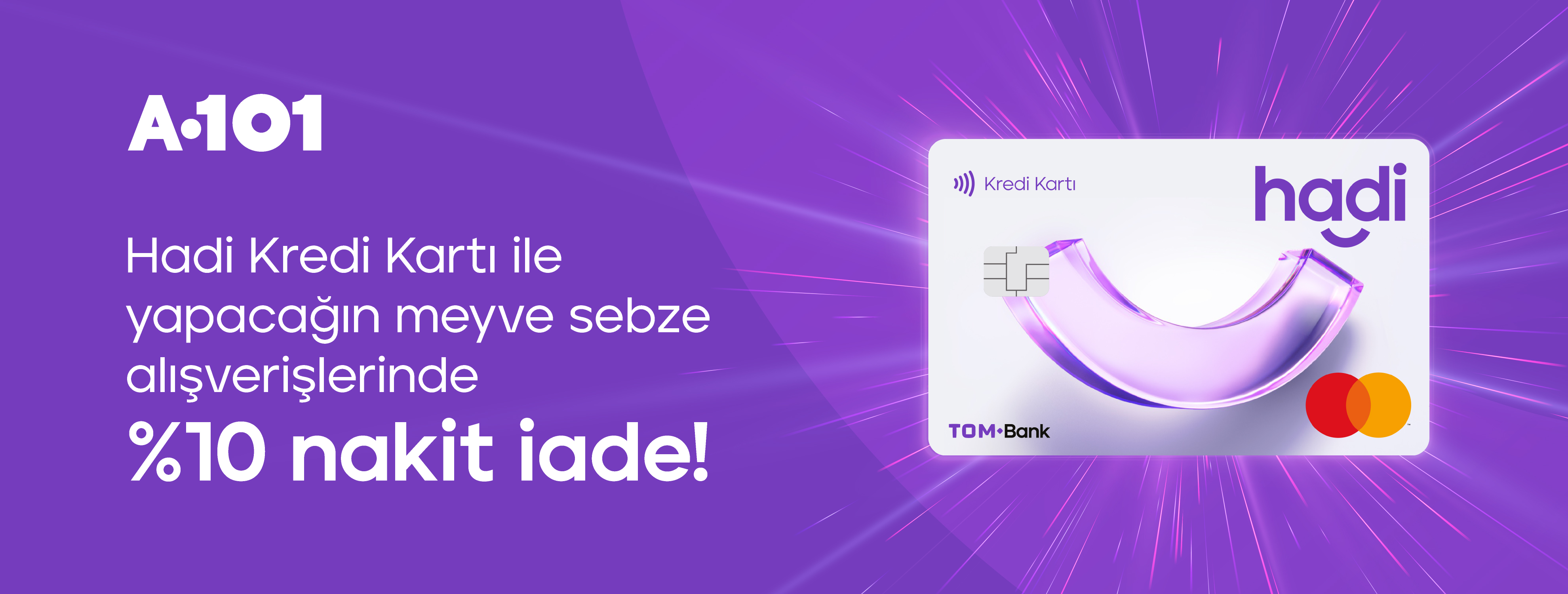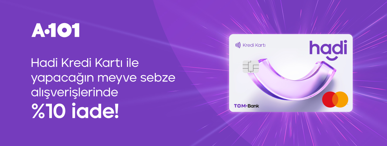 - Meyve sebze ürünleri için yapılan kredi kartı harcamalarında kazanılan nakit iade, A101’de %1 kampanyasının sağladığı kazanıma ek olarak %9 olacak şekilde hesaplanır ve HADİ kredi kartına harcama iadesi olarak aktarılır.