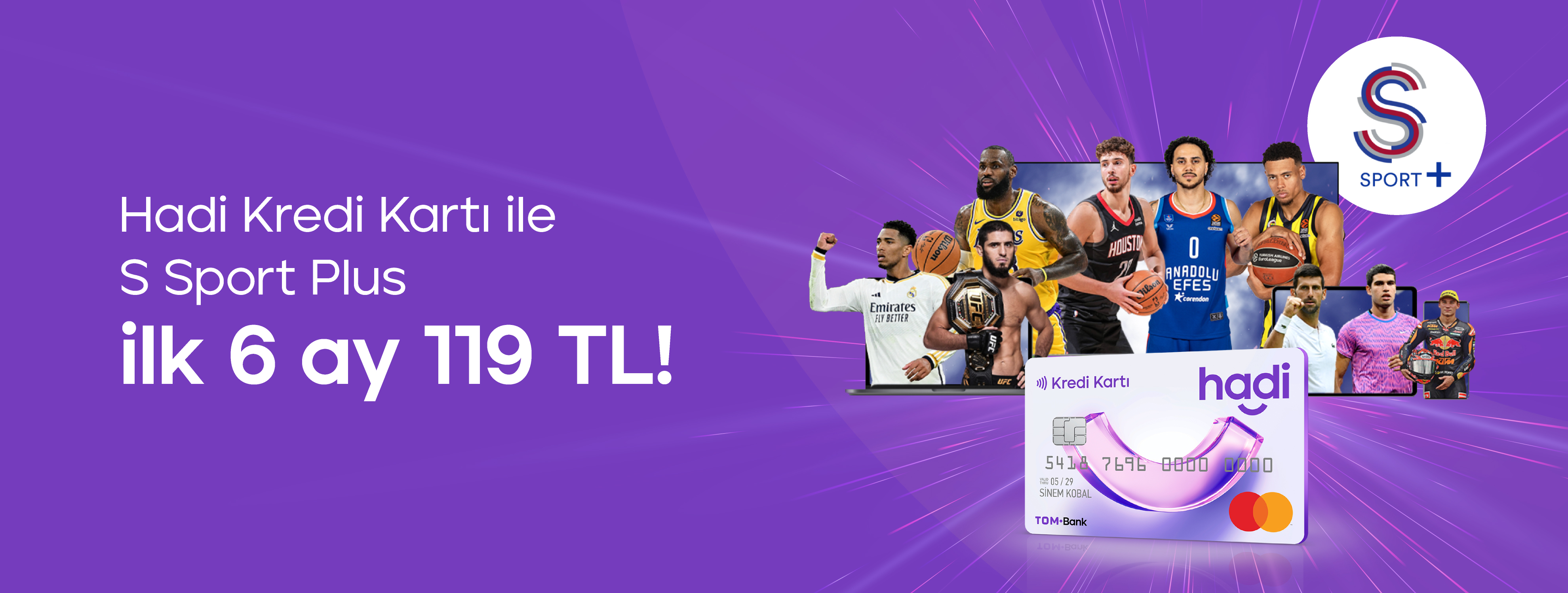 Hadi Kredi Kartın ile EuroLeague, LaLiga, NBA, MotoGP ve dünyanın önde gelen birçok spor organizasyonunu S Sport Plus ayrıcalığıyla ister Smart TV'den ister web'den ister cepten ilk 6 ay aylık 119 TL ile izleyebilirsin.