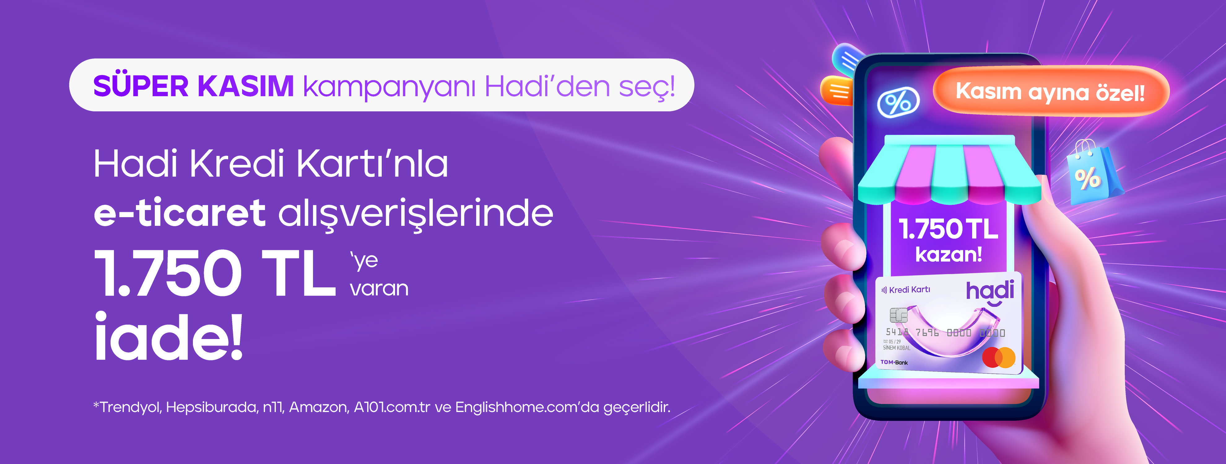 Hadi Kredi Kartın ile hemen kampanyanı seç, seçili e-ticaret platformlarında 30 Kasım’a kadar yapacağın alışverişler ile 1.750 TL’ye kadar iade kazan!