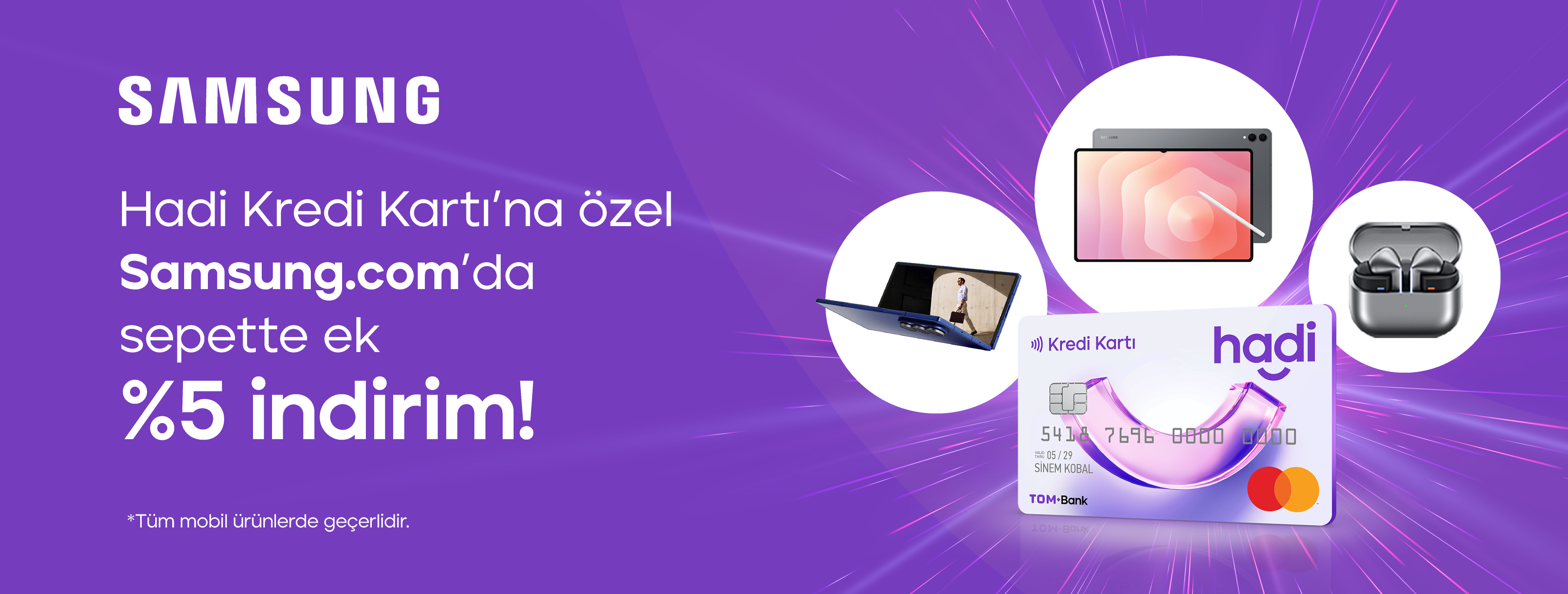 Hadi Kredi Kartın ile samsung.com.tr web sitesi ve Samsung Mobil uygulamasında yapacağın harcamalarında sadece sana özel %5 indirim!