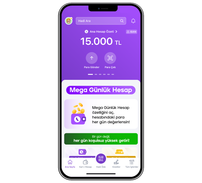 Mega Günlük Hesap’ta avantajlı getiri fırsatlarından yararlanmak istiyorsan, sen de hemen Günlük Hesap aç!
