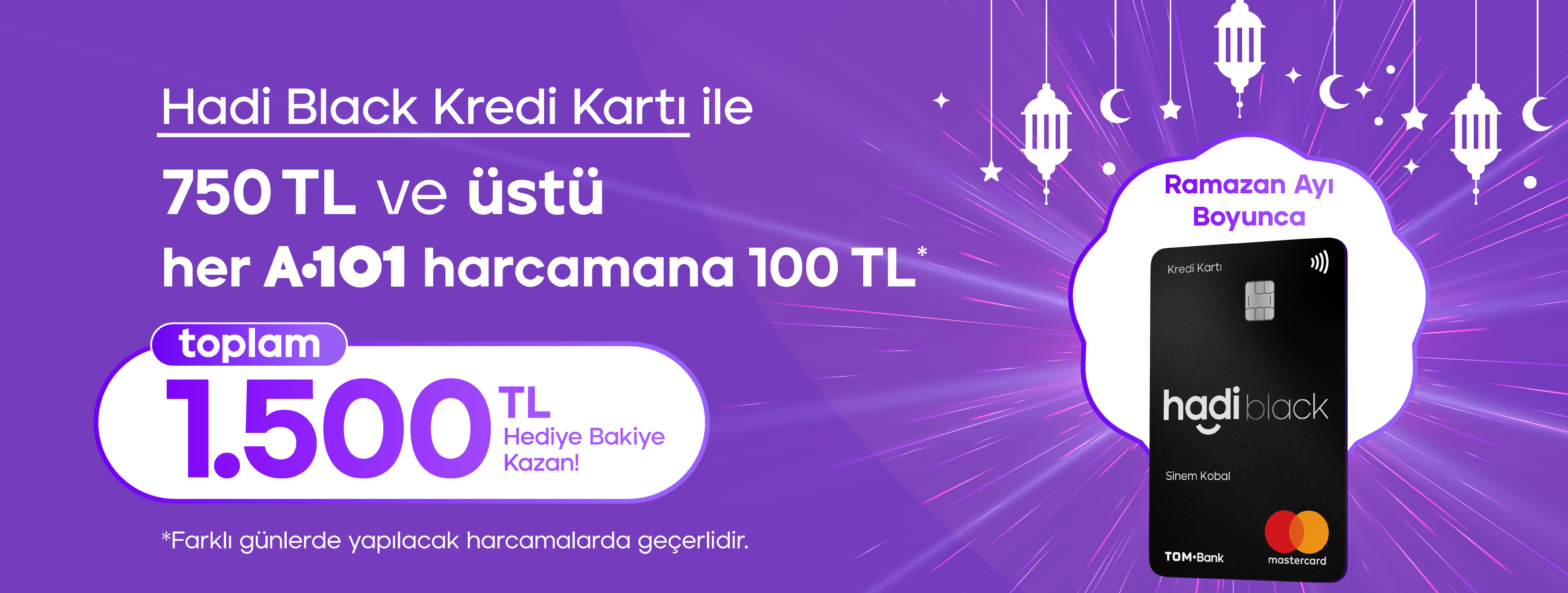 Hadi Black Kredi Kartı ile Ramazan ayında 1.500 TL değerinde A101 Hediye Bakiye!