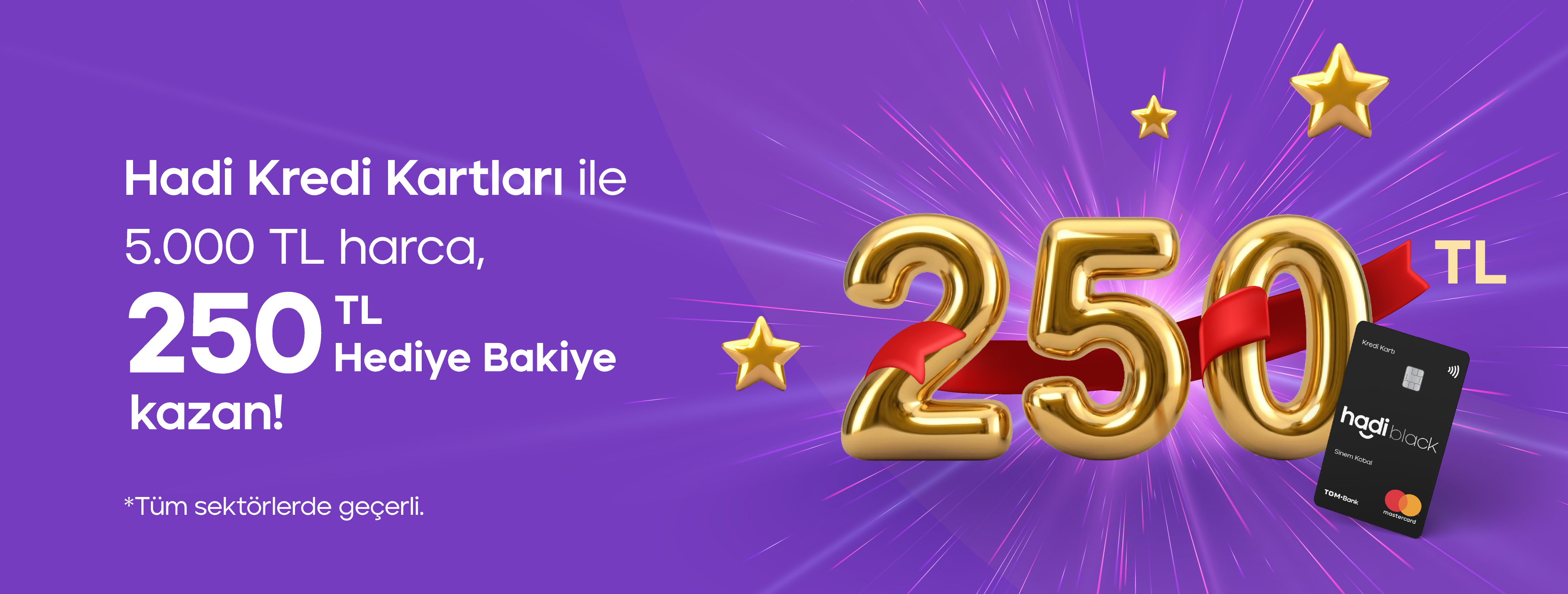 - TOM Bank Hadi, kredi kartı limiti belirleme, kampanyayı durdurma, koşulları değiştirme veya iptal etme hakkını saklı tutar.