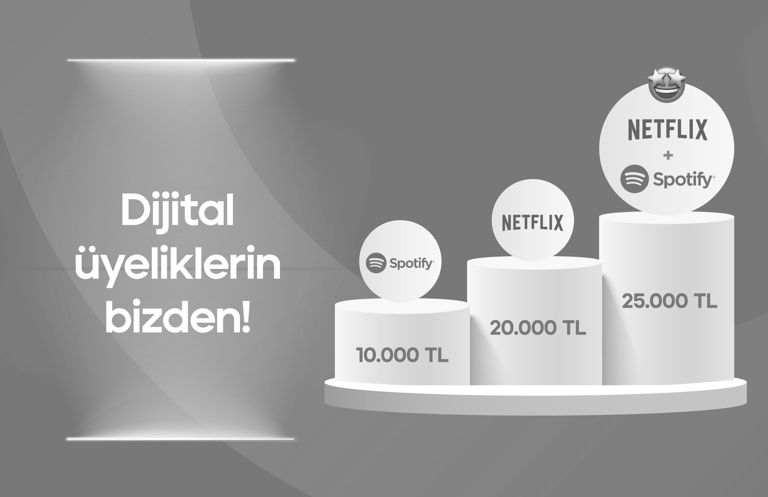 - Abonelik ücretleri Spotify ve Netflix tarafından belirlenmektedir. Abonelik ücretlerinde değişiklik olması durumunda kampanya kazanım tutarları da güncellenecektir.