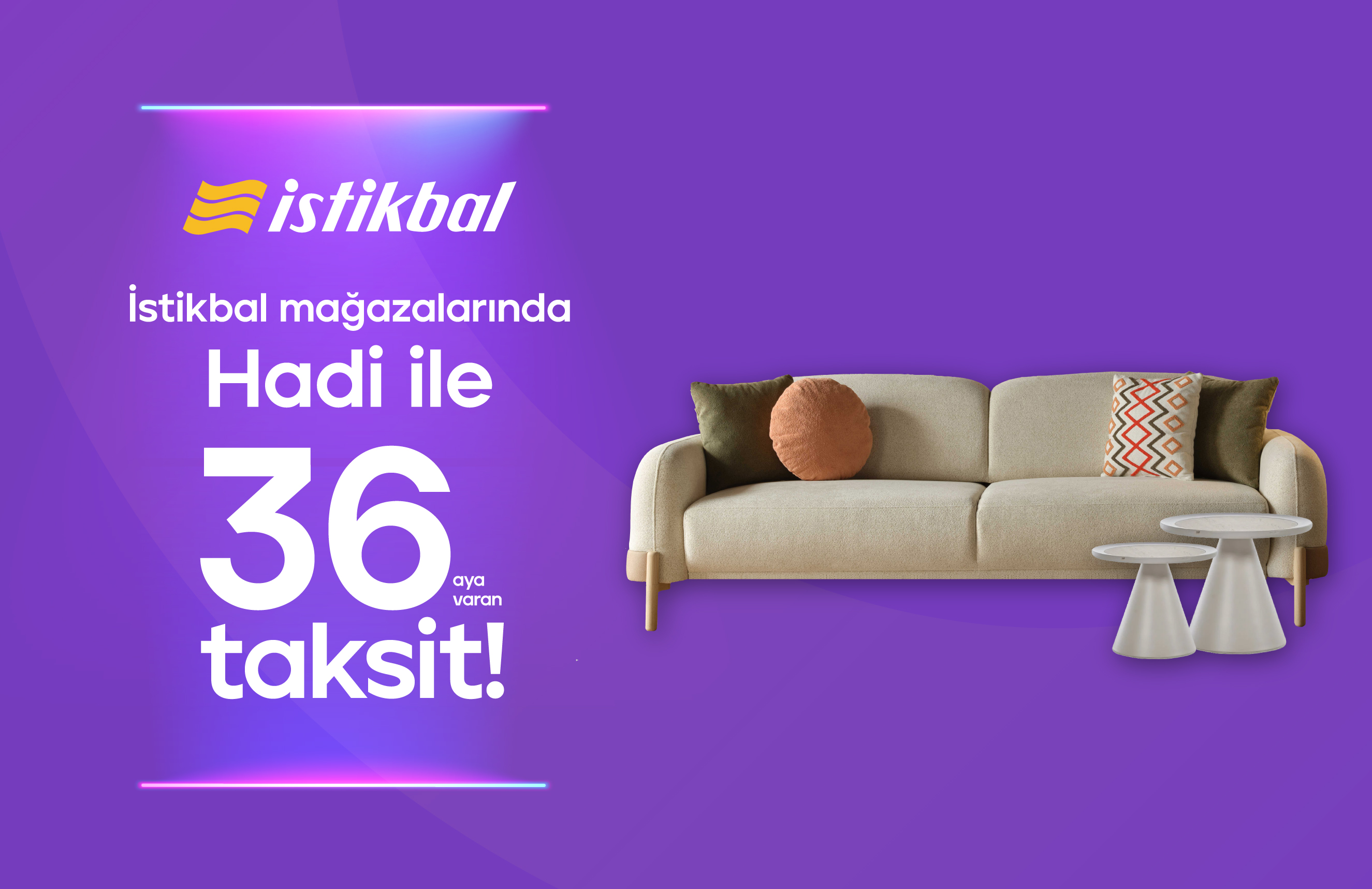 31.12.2026'ya kadar Hadi Taksitli Alışveriş Kredisi ile anlaşmalı İstikbal mobilya mağazalarından yapacağın mobilya alışverişlerinde 36 aya varan taksit fırsatı seni bekliyor!