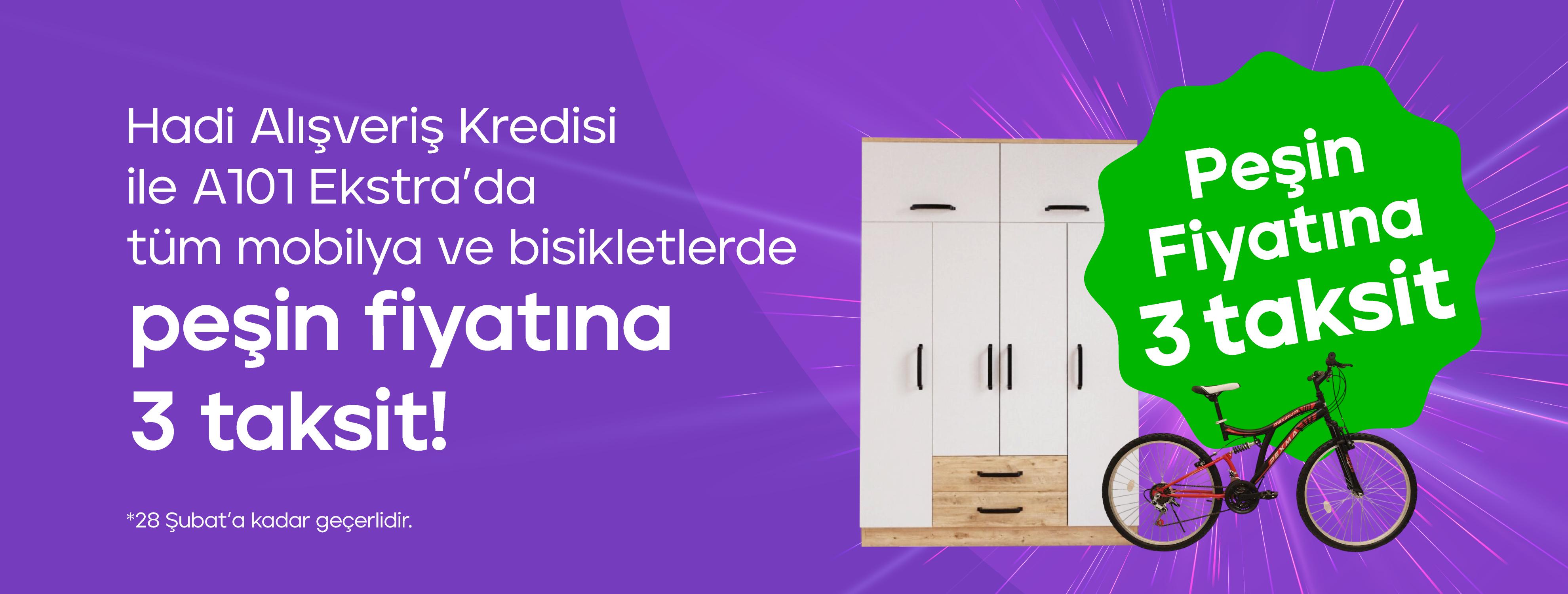 - Kampanya, seçili mobilya ve tüm bisiklet kategorisi için sadece, A101 mobil uygulaması veya a101.com.tr üzerinden, A101 Ekstra’dan yapılacak alışverişlerde geçerlidir.